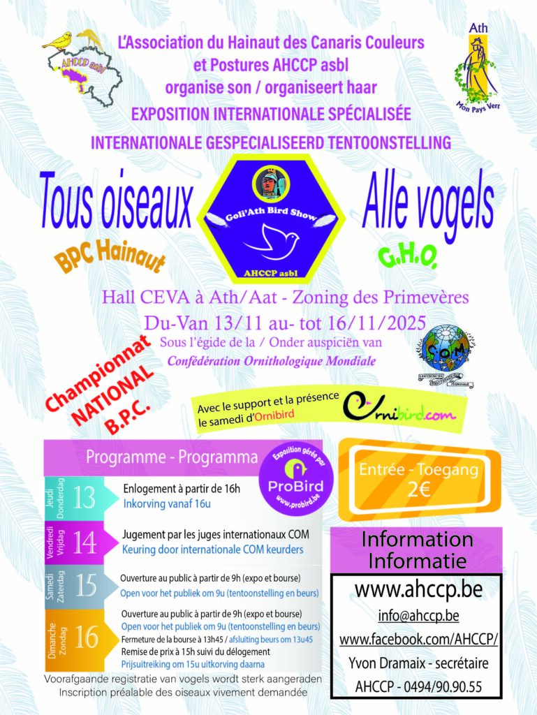 Bienvenue sur le site de l’AHCCP – Association du Hainaut des Canaris Couleurs et Postures ASBL